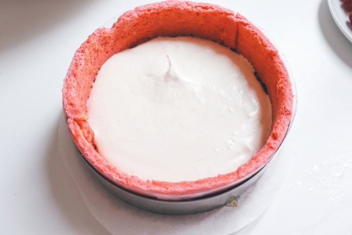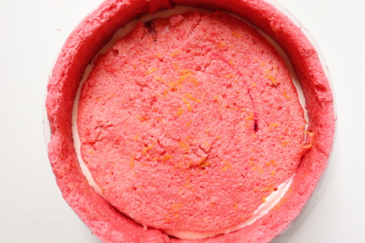 Montage de la charlotte vanille, framboise et chocolat Ruby