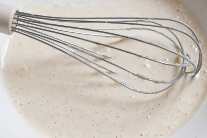 Mon conseil: pour une magnifique mousse vanille aux notes boisées, faites infuser la gousse fendue et grattée dans le mélange lait entier + crème durant plusieurs heures, minimum 4 heures. (Porter à ébullition l’ensemble, ôter du feu et couvrir).